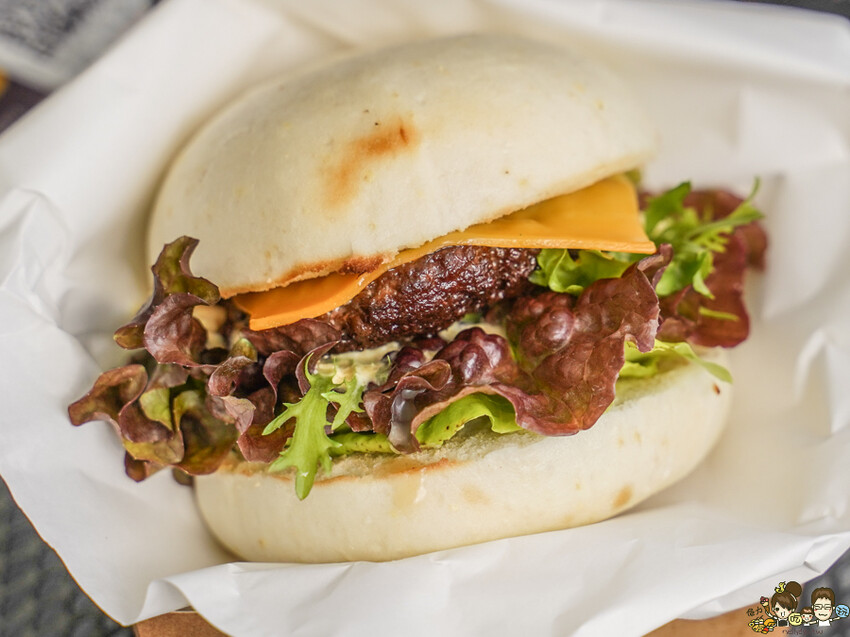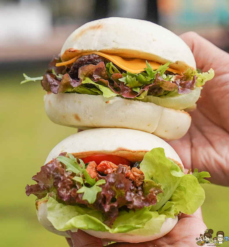 屏東在地獨特小米饅頭製作的漢堡美食,口感扎實帶彈牙、香甜順口感受饅頭提出得自然風味