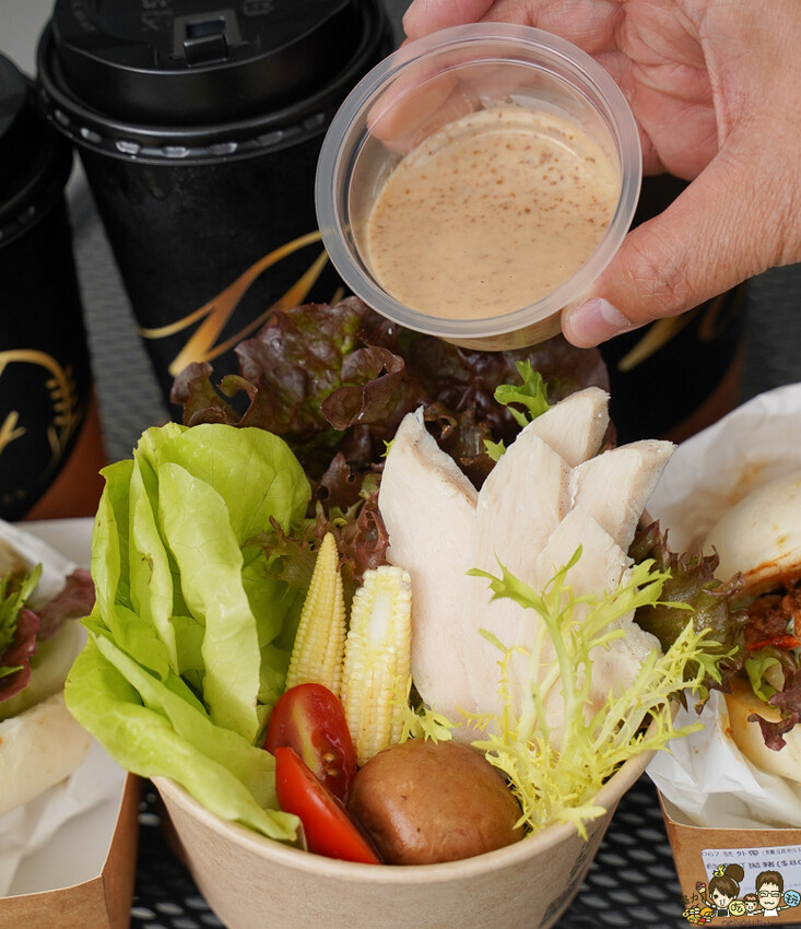 特別使用小米製作饅頭來當漢堡唷~口感多層次、吃完很有飽足感不空虛