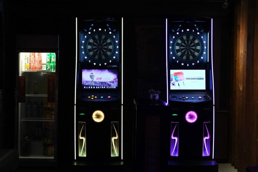▼【登大郎串燒烤肉店】中炒熱氣氛必備的飛鏢機,讓大家用餐外還能增加樂趣,透過打鏢來發洩平日的壓力。