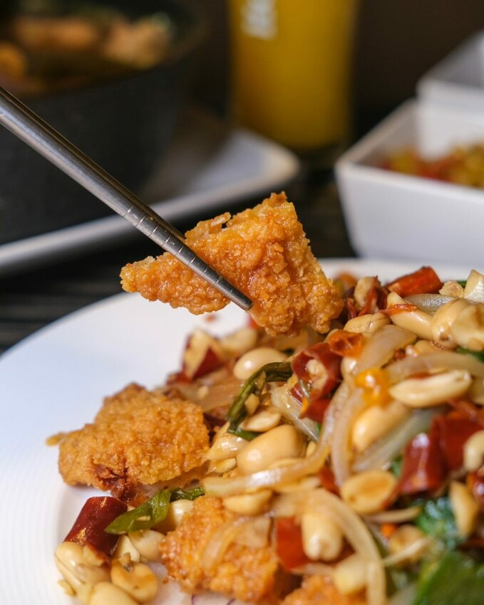 ▼一上桌就被秒殺的宮保雞排,以辣椒帶出迷人的過癮滋味,辣度剛剛好不會太刺激,炸到金黃酥脆的雞排,則是軟嫩多汁又不失味道。