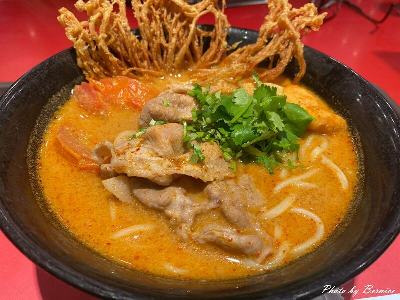 想要有肉又想要喝湯還想要那炸金針菇,所以選了酸辣番茄豬肉麵;雖然是泰式酸辣湯頭但味很溫和,可以整碗喝光光,豬肉也不會太肥、炸金針菇不會太油膩,整體來說還不錯吃