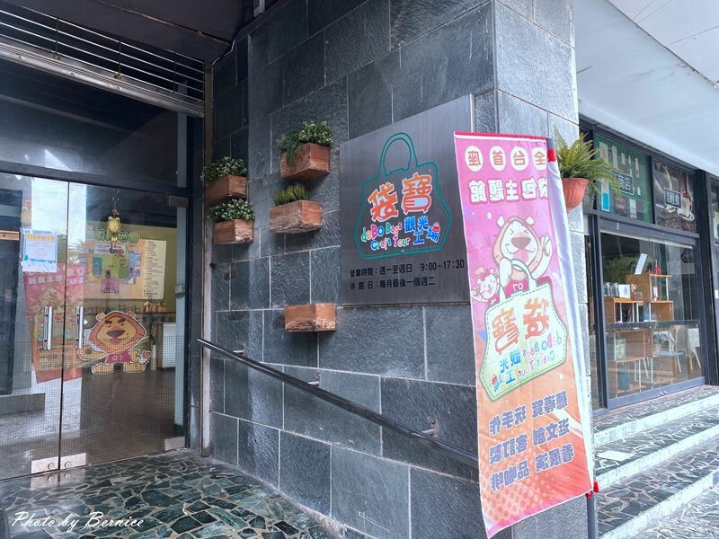 走在公園中遠遠就就看到袋寶土祥物-阿柒獅,讓我知曉我快到目的地了,但走近後疑惑也隨之而來,因為不像觀光工廠的氛圍,眼前看到的是餐廳,後來抱著試試心情走近餐廳,一旁不起處的牆面有觀光工廠的標誌;沒錯就是要從這不起眼小門走進去