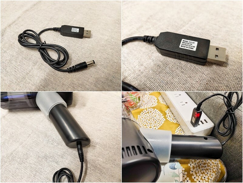 在開始使用之前,記得先用USB充電線將吸塵槍充電,充電時會亮起紅色LED,充飽電就可以來實際玩玩看啦!
