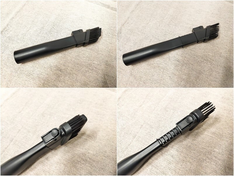 長扁吸嘴前方有可調節的刷毛,帶有刷毛清理灰塵更加容易,也是我最常使用的吸頭