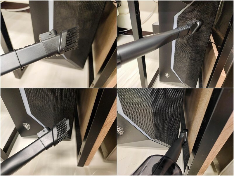 吸塵槍長扁吸嘴搭配毛刷,清理主機網狀進氣散熱孔超級方便,灰塵一下就被刷起來超乾淨!