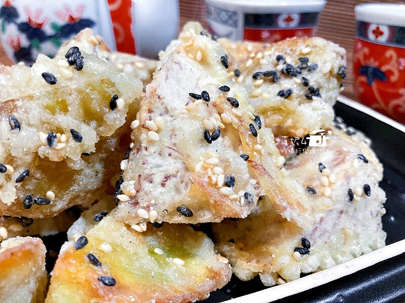 炸好的芋頭,外皮甜脆內部鬆綿,加上芝麻香…太迷人了!