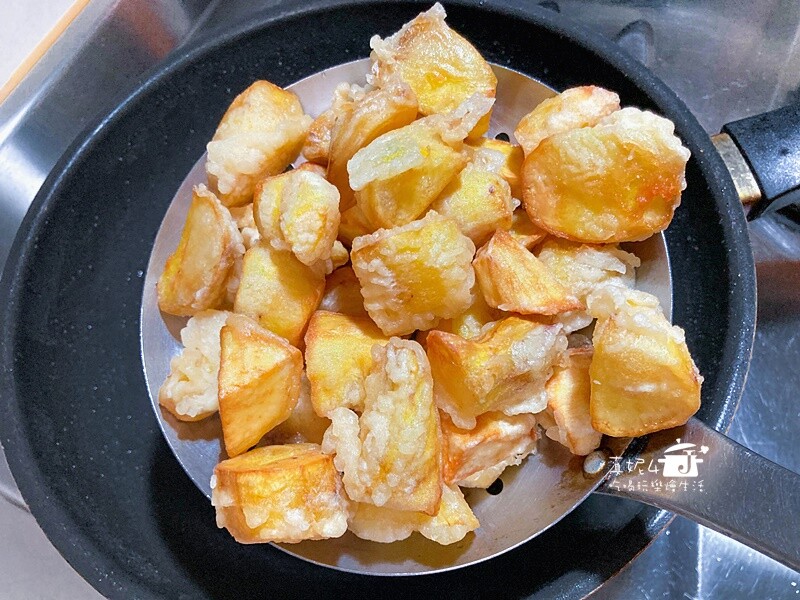 用同樣步驟把地瓜塊也炸起來