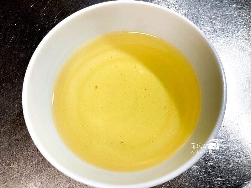 因為份量不多把鍋子拿傾斜集中加熱的面積