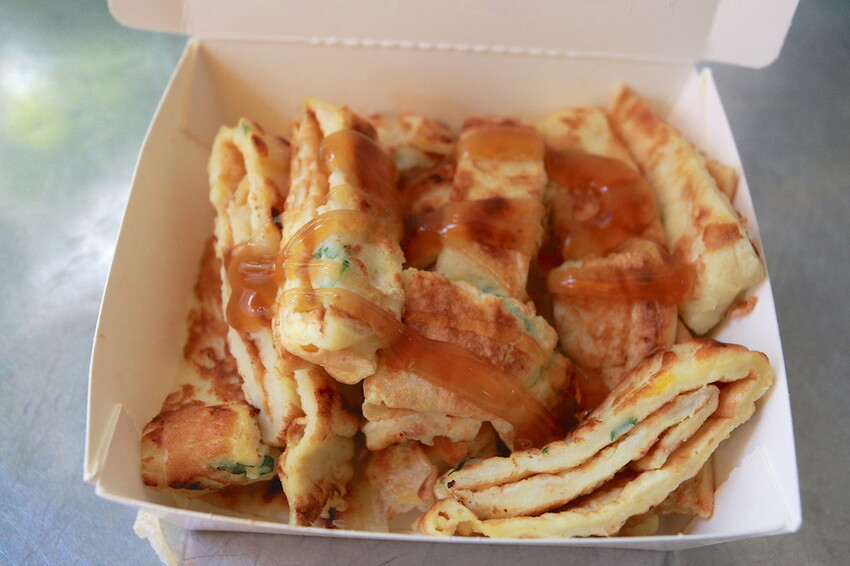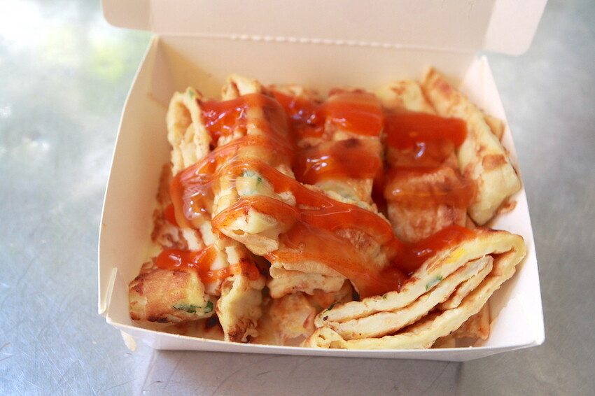 這蛋餅有點焦香很軟Q鹹香超好吃