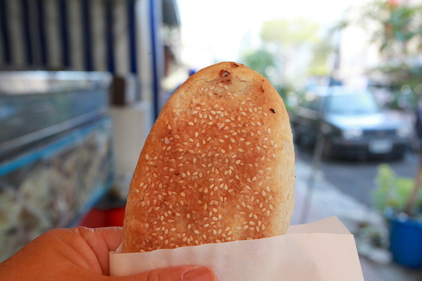 這燒餅夾著蔥蛋僅賣30元確實不貴,表面沾滿白芝麻烤到焦黃很吸睛。
