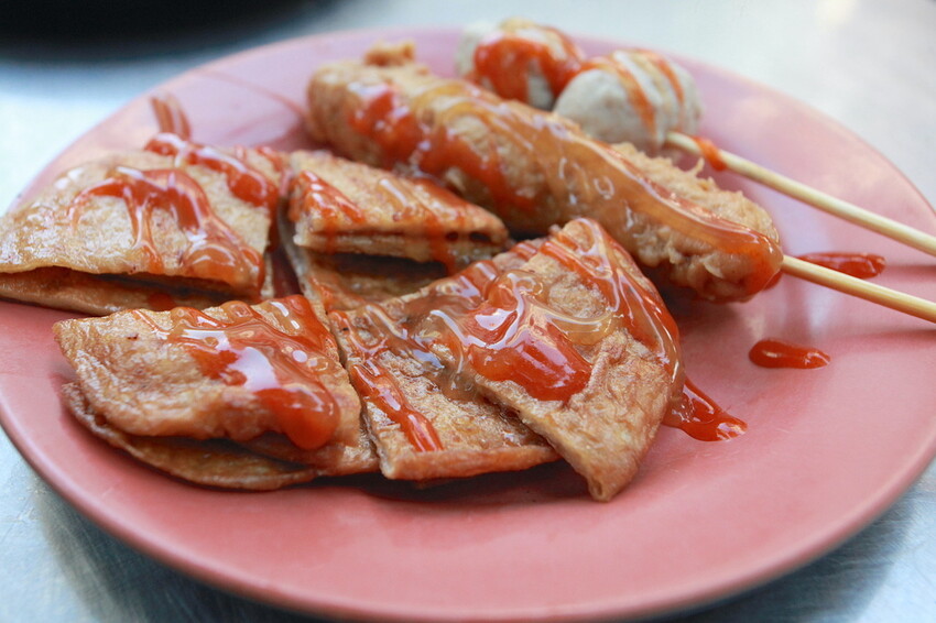 今天路過發現攤位上掛滿香腸瀑布超吸睛,下午來品嚐發現香腸瀑布已經不見了。