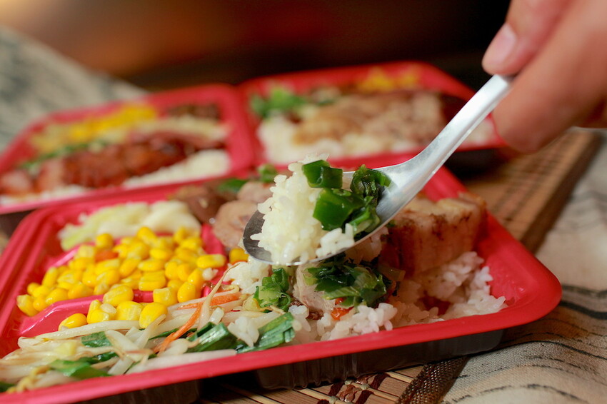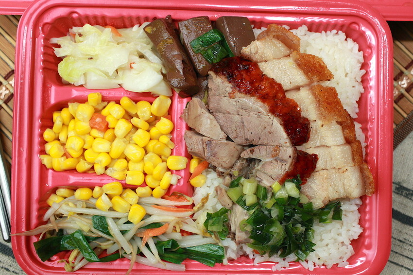 外帶便當自己可挑選四樣配菜,至於內用僅能選擇三樣配菜。