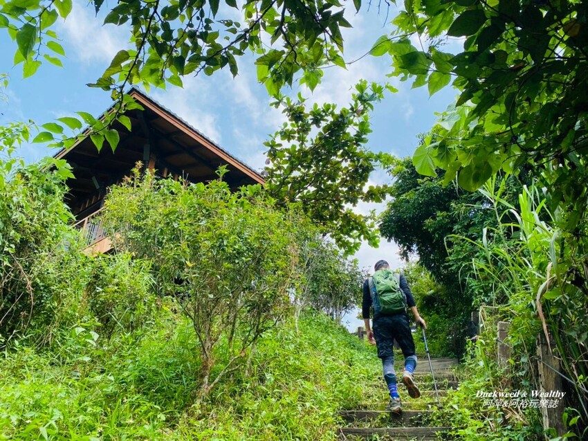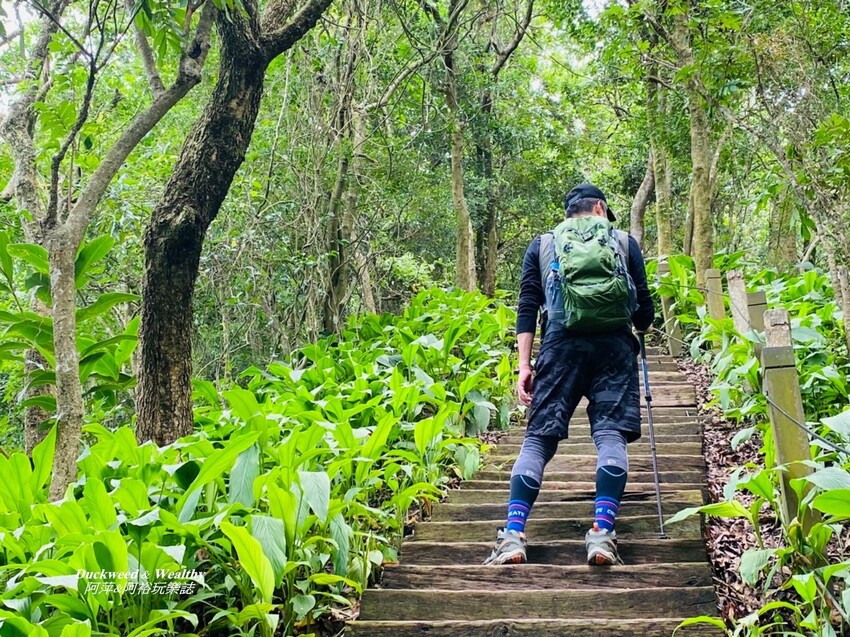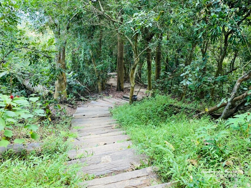 鈺鼎步道木頭階梯兩旁種滿月桃,環境優美,仍保有原始自然生態,