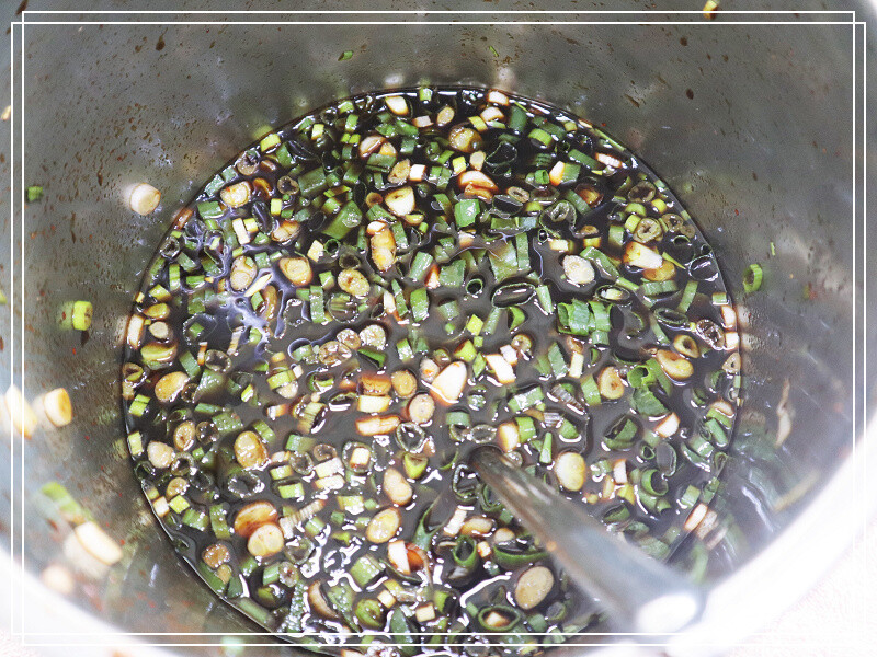 不過加的時候要小心,醬油鹹度頗夠,小心的盡量撈蔥就好,這樣就會順便撈到醬油了,別像我們一樣,今天就不小心加了太多醬油,我覺得有點太鹹🙈🙈。