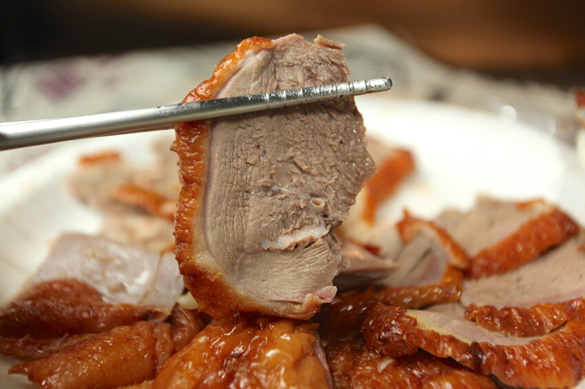 這烤鴨表皮富油脂焦香不油膩,肉質多汁很入味軟嫩真的很好吃