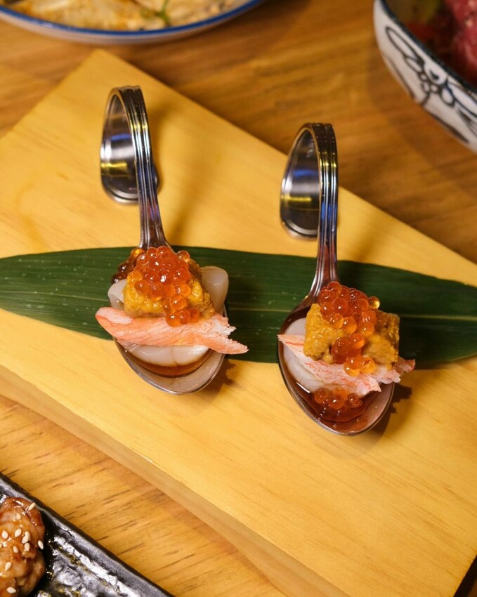 ▼喜歡吃生食的推薦這道干貝大麥克,由超級豪華的魚卵、海膽、干貝組成,一口吃下帶來奢華享受。