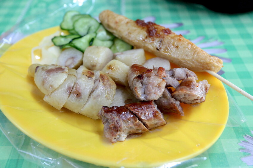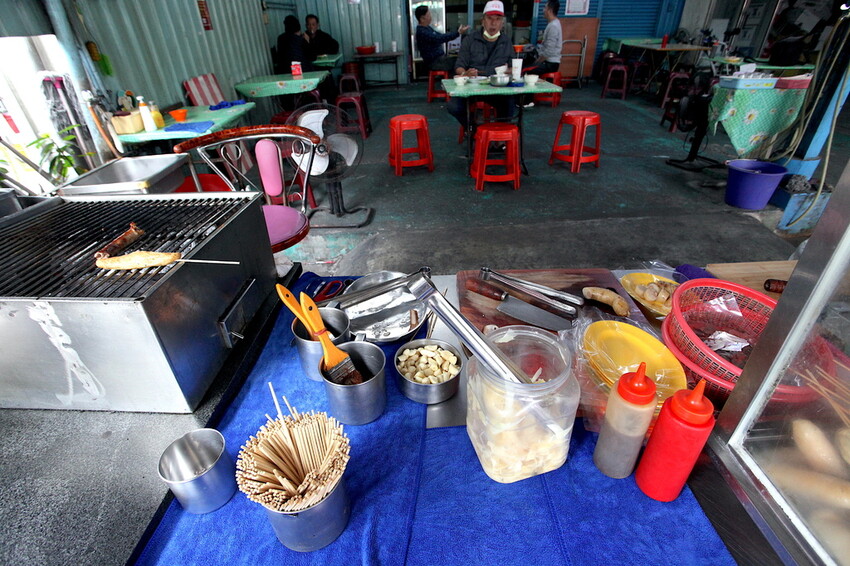 這盤烤物有大腸、香腸及烤甜不辣等,不用交代老闆就會放置蒜頭、嫩薑及醃製小黃瓜供搭配享用。