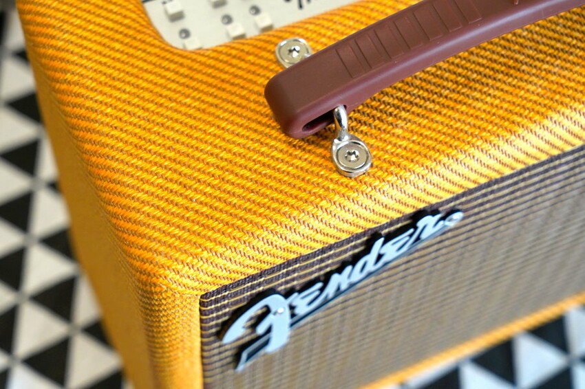 ▼這台「Fender INDIO 2」承襲自家品牌吉他音箱的經典外型,並推出Tweed(黃色斜紋)、Tolex(復古黑)兩種色系,我們選擇的是質感編織、雙色網布的Tweed,這款採用木製箱體,搭配手工裱裝網布,加上經典LOGO,看起來復古又雋永,就算放久也不退流行!