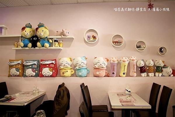 『喵匠』在靜宜大學學區,是一間小有名氣的義式餐廳,店內擺滿了各式各樣大大小小的貓咪玩偶,原來這間以療癒貓咪為主題的『喵匠義式餐廳』,緣起是因為老闆本身是位愛貓人士,在時常幫助貓咪的同時也希望和他一樣愛貓的人士,能以領養代替購買。
