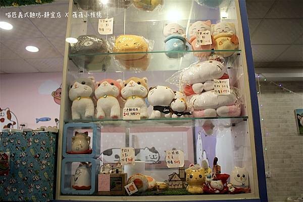 櫃檯旁一整面的可愛貓咪玩偶,是可以帶回家的喔!
