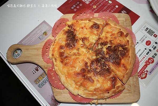 在喵匠-清水店,吃過後就一直念念不忘-貓匠8寸PIZZA套餐,不想和上次一樣,所以這次點了一個不同的口味-蝦仁披薩套餐。