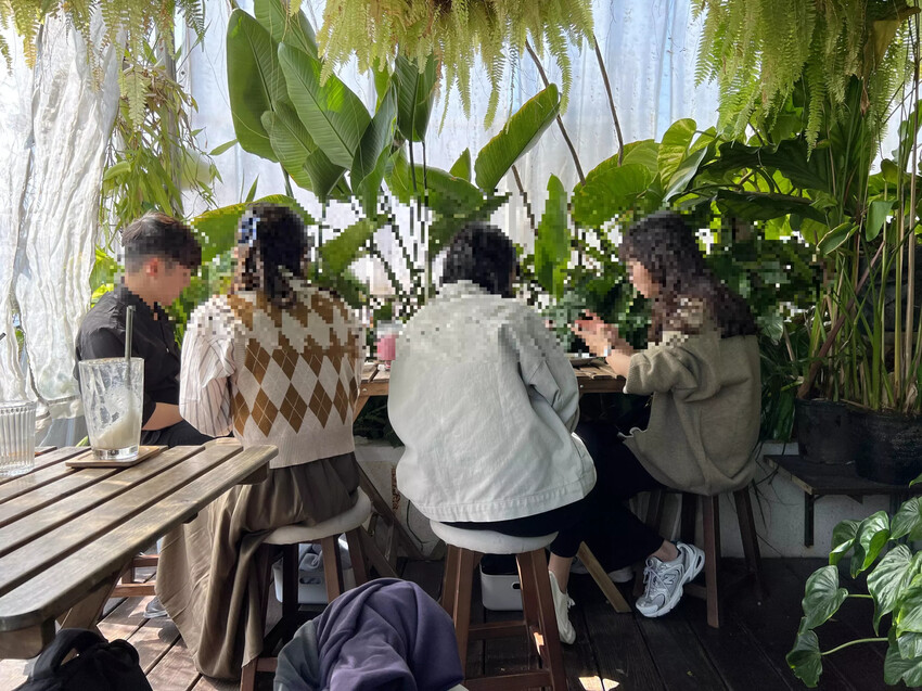 白色清新風格搭配綠色植栽森林系的環境,讓人彷彿在植物園內用餐