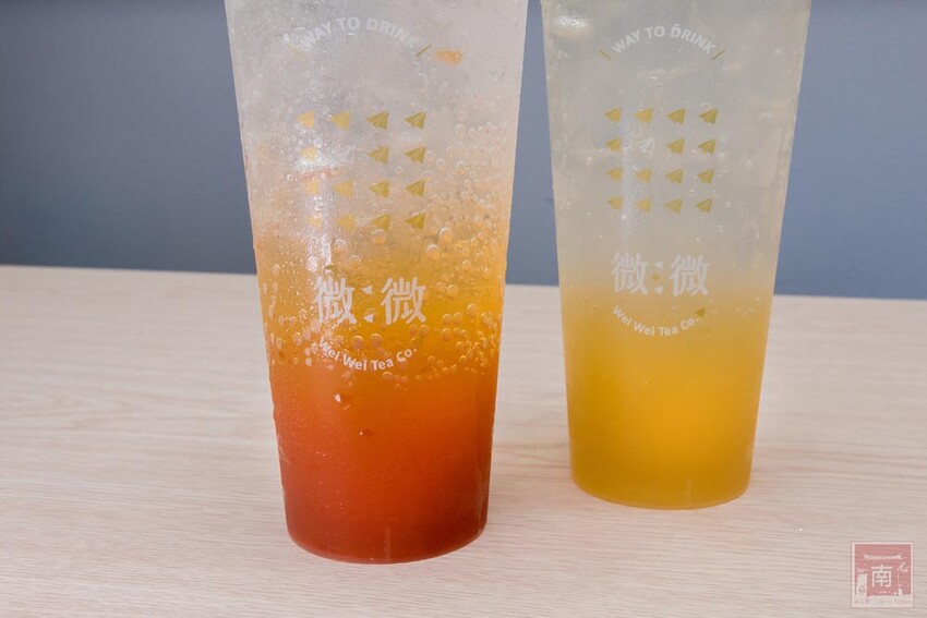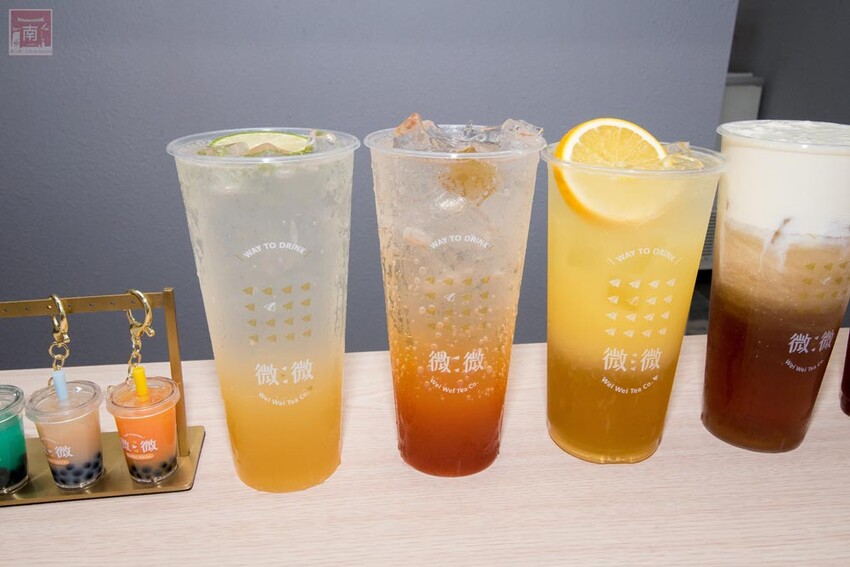 飲料分為五大類,有『微愛季節』、『微微愛生氣』、『100%鮮榨果飲』、『純茶飲』、『微微特調系列』、『厚奶蓋』、『鮮奶茶』和『醇奶茶』,愛生氣就是氣泡飲系列,鮮奶茶系列則是使用無添加、無調整的禾香牧場鮮奶。