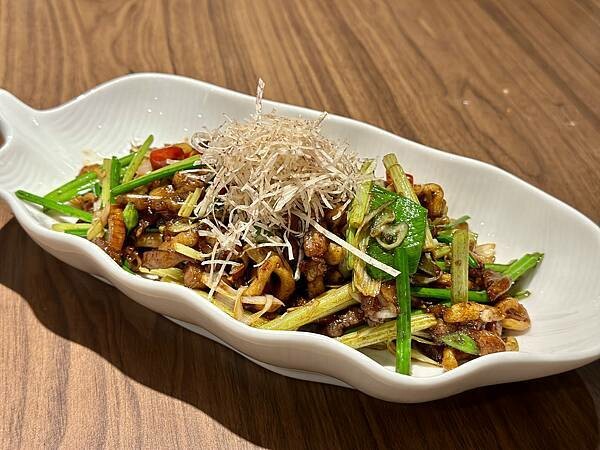 這時候上了這道類似客家小炒的東西是…