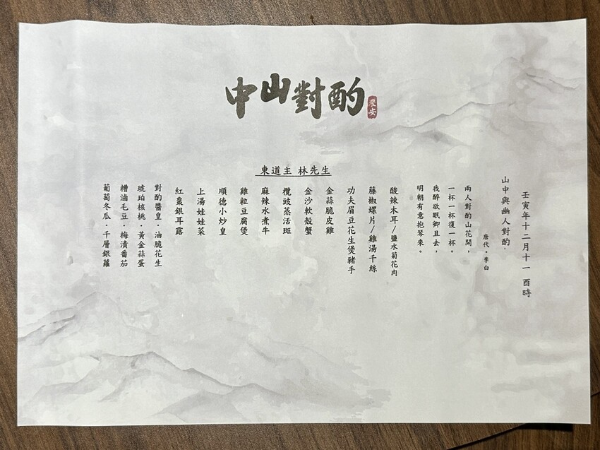 【中山對酌 菜單】