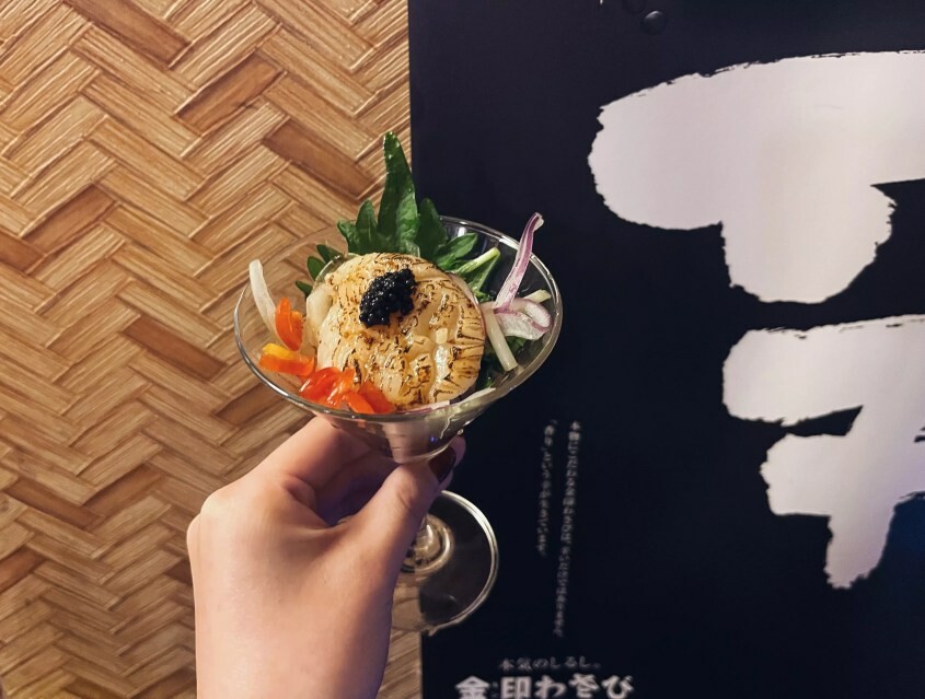 板橋居酒屋推薦:隱居居酒屋必點餐點。魚子醬生干貝