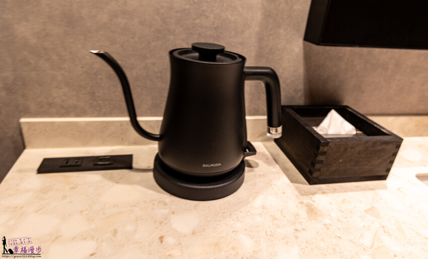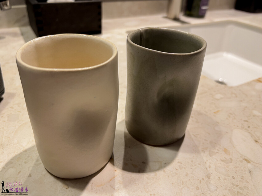 抽屜打開裡面有著水杯和茶杯,有放置茶包供住客飲用,這茶杯看起來也是很高級。