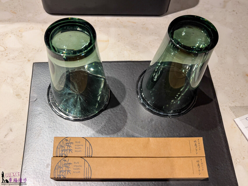 漱口杯和牙刷擺放在此,牙刷是使用竹製的較為環保。