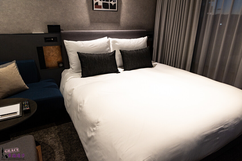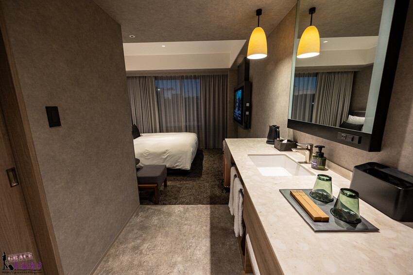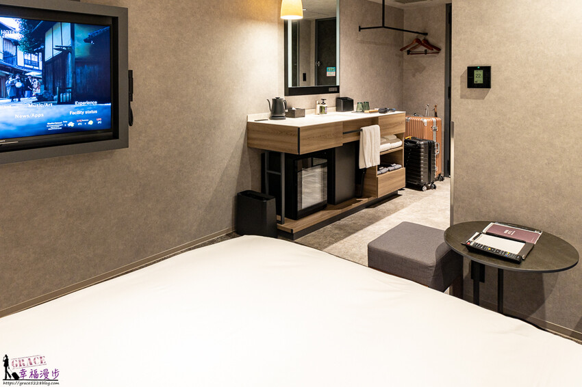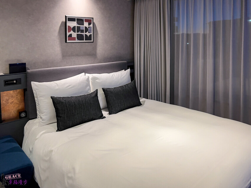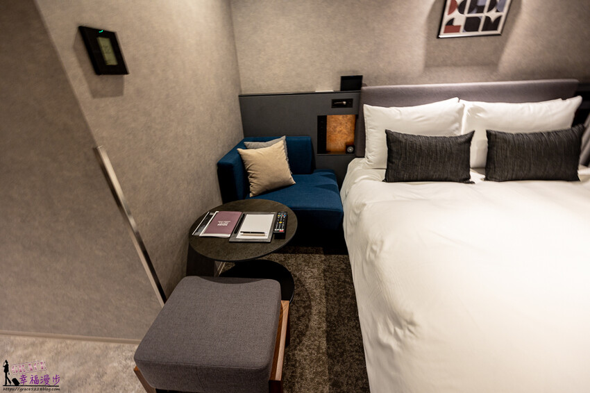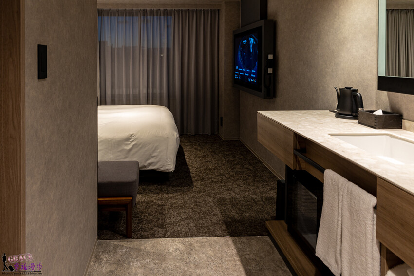 接著來到入住的房間,早上就先來寄放行李,下午入住時飯店人員已經將行李放置在房間了,這也太貼心了,以灰色系為主色系,讓整個房間看起來相當沈穩,房間的格局比想像中還要大耶!