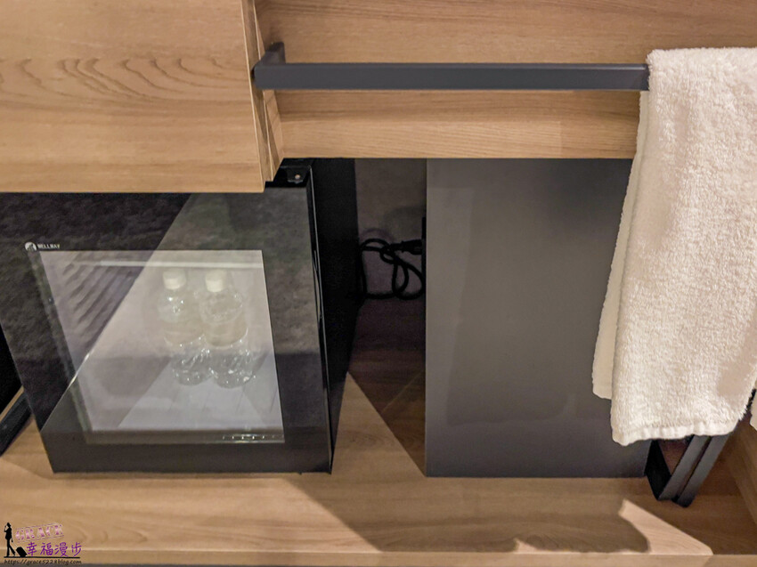 小冰箱擺放此處,很少看到日本的飯店還有提供礦泉水耶!