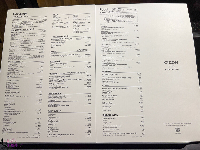 哇!桌子中間還有點燃柴火保暖耶!整個太有渡假的氛圍了,因為晚上要去拍夜景就沒有在這裡小酌,如果有時間在這裡點杯調酒也是很愜意。