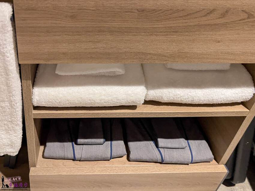 浴巾、毛巾和睡衣也都放在櫃子裡。