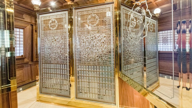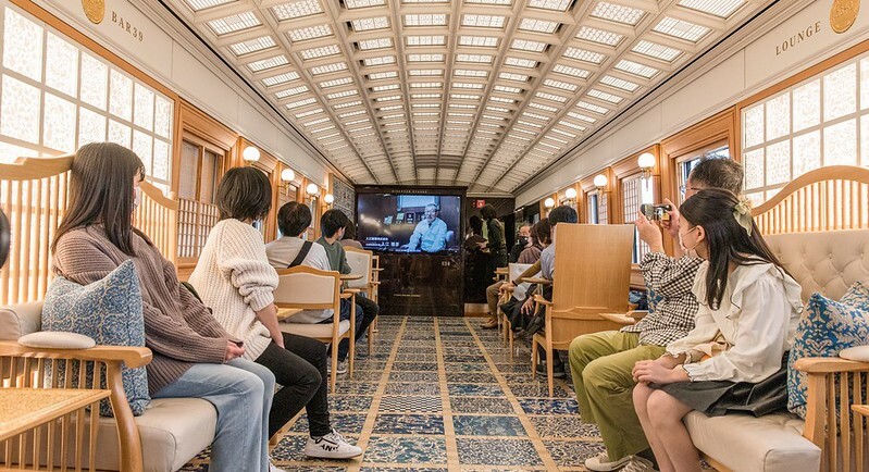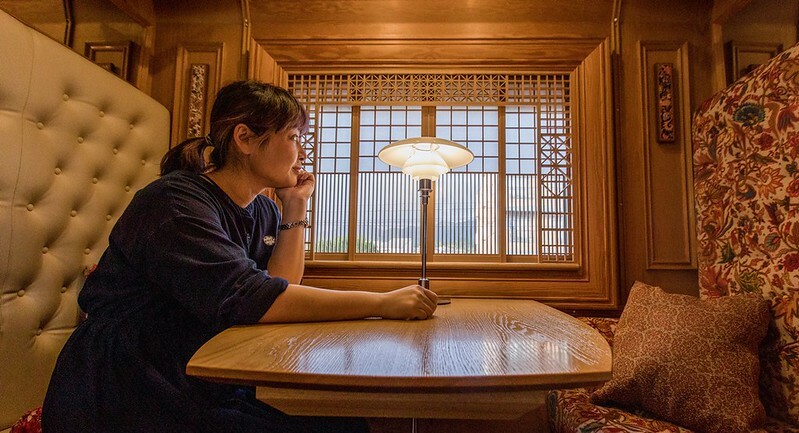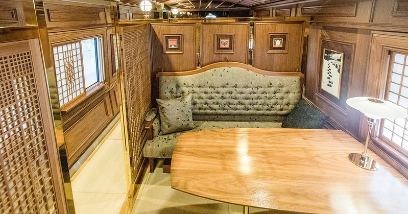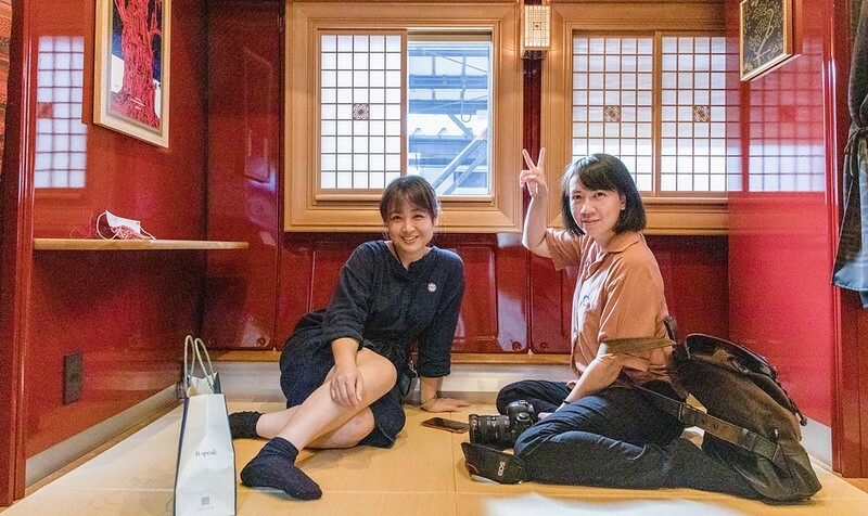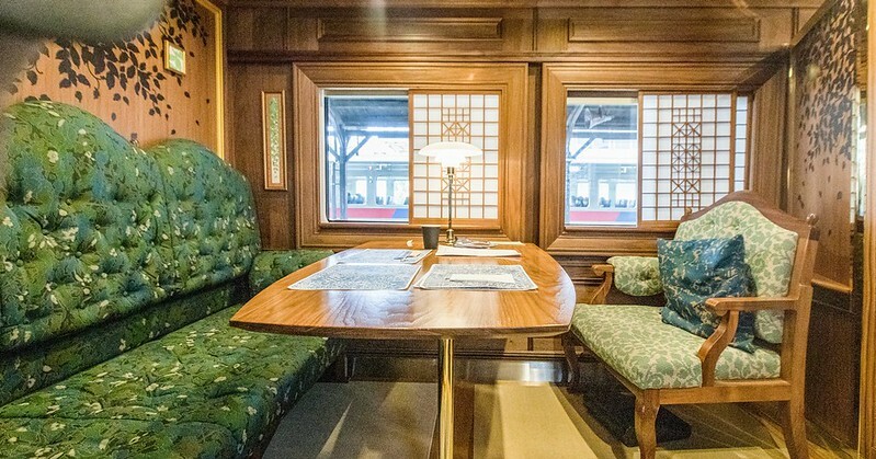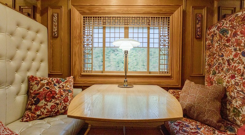 6號車廂的後段還有一截和室塌塌米共用空間,乘客可以在享受野餐般的這休閒時光,木窗加上透亮的紅色,一整個喜氣洋洋。