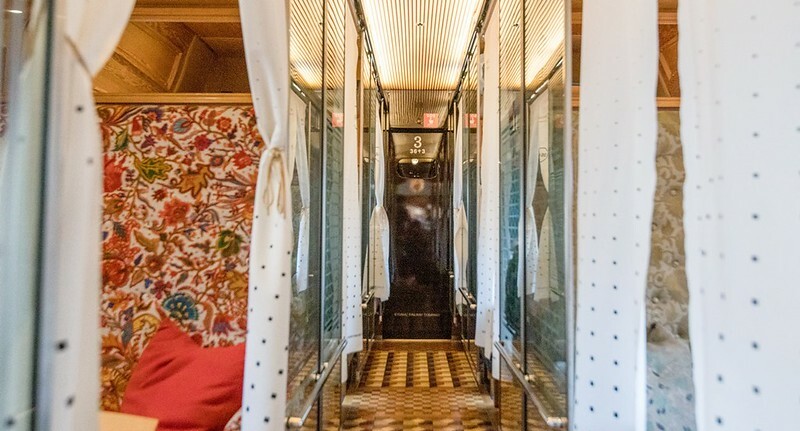 2號車廂後半段不同大小的個室包廂,同樣是花布搭配木製沙發。