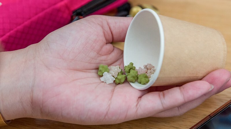 是說這抹茶的金平糖真的好好吃,金平糖混著抹茶的微苦、茶香,層次非常棒,另外還有蕃茄和柚子三種口味,當下、立馬買了三盒,還加碼梅酒三小盒組....。