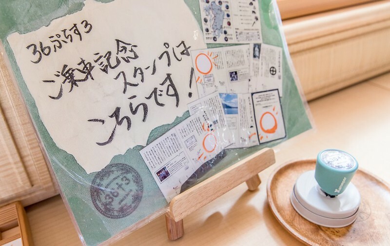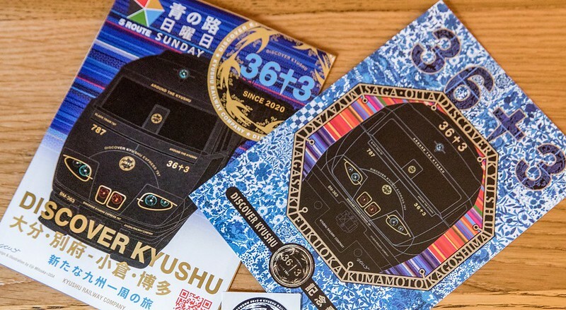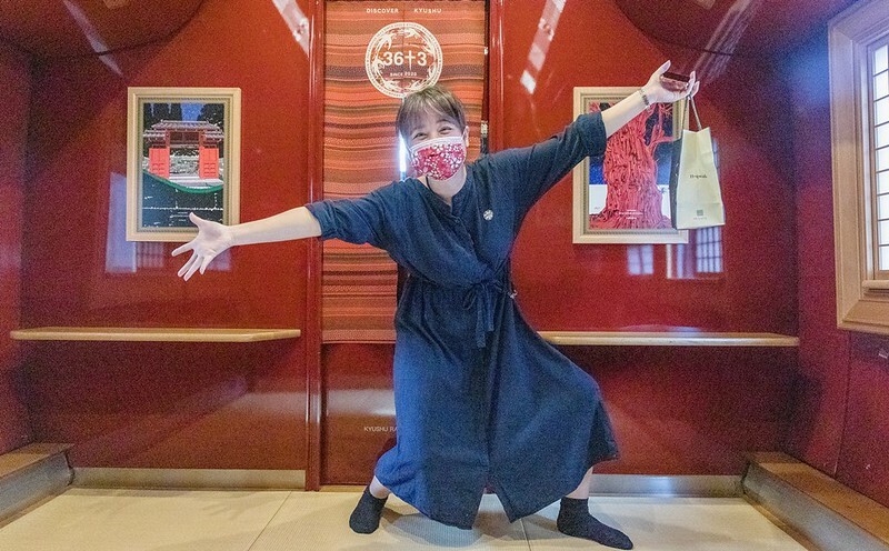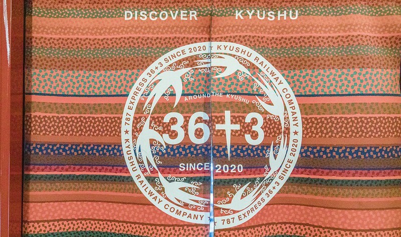 36+3列車最特別的是,打造了五輛赤、黑、綠、青、金5種顏色的主題列車,分別在週四至週一每日行駛,橫跨九州七縣,每一輛列車、每一條路線負責串起兩個縣市的文化、故事,訴求是白天享受列車之樂,晚上希望乘客能享受停車站當地之樂。36+3列車行駛總長度達1,198公里,為世界最長(非寢台列車)的環狀鐵路路線,真希望有一天可以把這五條路線都搭上一遍。另外,不曉得大家有沒有注意到,這列車行經的路線,看起來很像日文的「わ」,也代表了驚喜的元素,也有「世界第一目標」的意象。