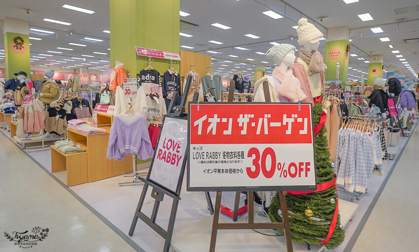 AEON的2樓賣場以衣飾區域的空間最大,款式多、折扣優惠給得也多,時常有本日特價、半額特價是挖寶的好地方。