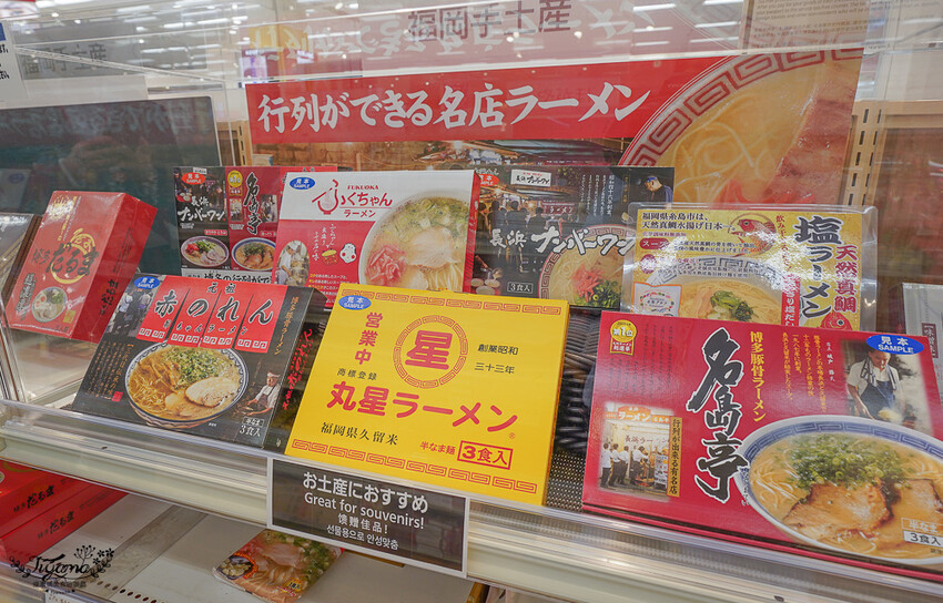 光是九州伴手禮區就逛了好久,一蘭拉麵幾乎架上空空剩沒幾包,不愧是超人氣伴手禮,博多草莓系列餅乾、精美巧克力禮盒,多款可口精緻的伴手禮,我的選擇困難症都要發作了。