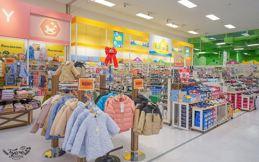兒童衣物用品太可愛,每次都逛得比自己的衣服還久,眾多商品有7折優惠,像是遊客愛買的童鞋、外套、衣服、食品、推車…等等,價格好優,一次購齊,根本不用再特地去找阿卡將。