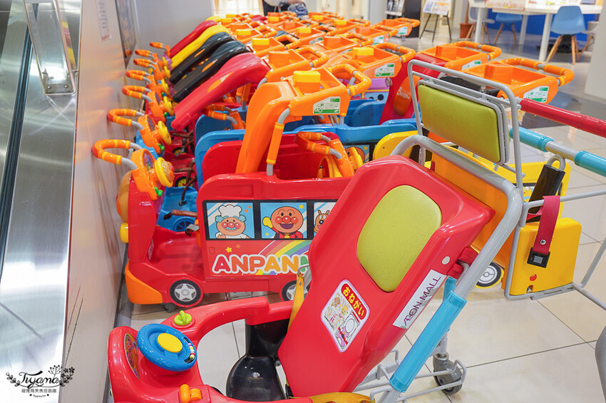 一進門就看到超可愛麵包超人購物車,親子家庭來逛一定會特別開心,可愛推車收服小朋友乖乖坐著,逛整個「AEON永旺夢樂城 福岡店」也不怕小孩吵。