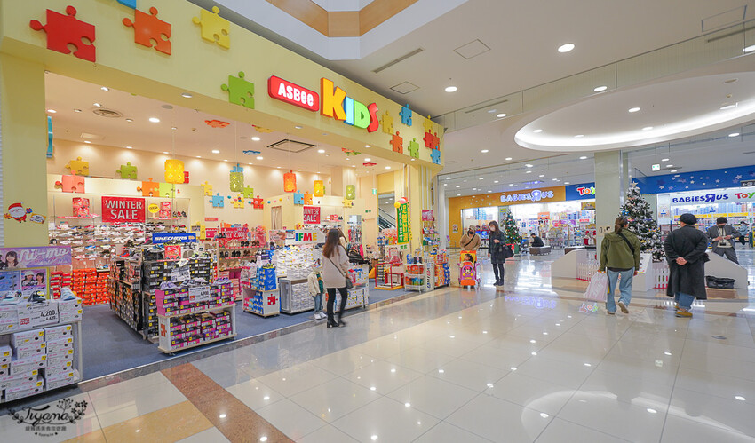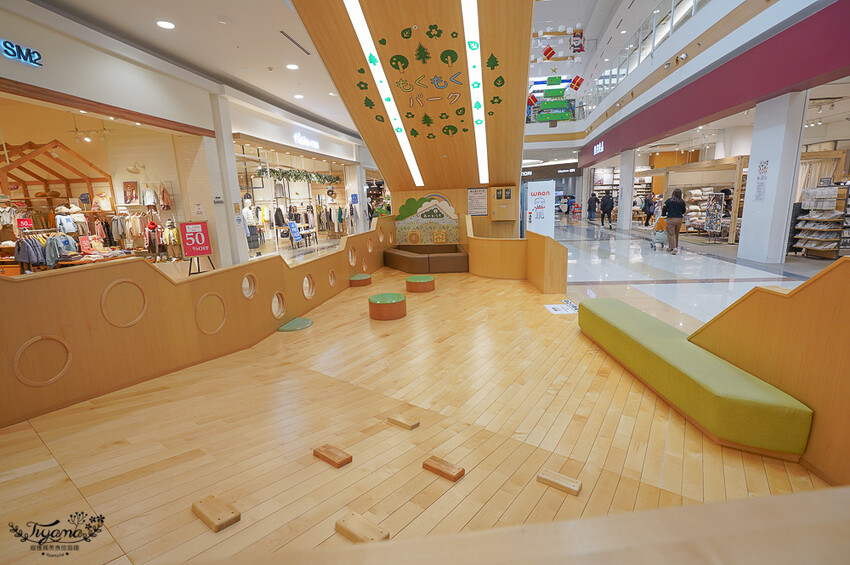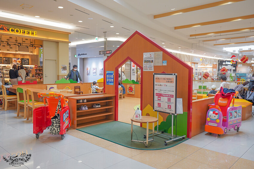 在接近1樓無印良品旁、2樓Con Do百元商店旁,有專為兒童設計的小遊戲區,這裡也很接近圖書店與玩具店,位置在同區的相對應上下樓區域,搭手扶梯上下就能2個都能玩到哦。