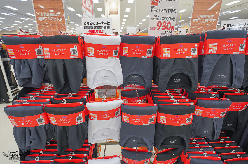 冬天必買的發熱衣,AEON自家品牌「TOPVALU發熱衣(褲)」比UNIQLO的便宜好多,穿起來保暖舒服,厚款只要980日元(薄款2件1580日元),打完95折再退稅等於一件不到930日元,全家都各買了2件,準備接下來的北海道旅行。