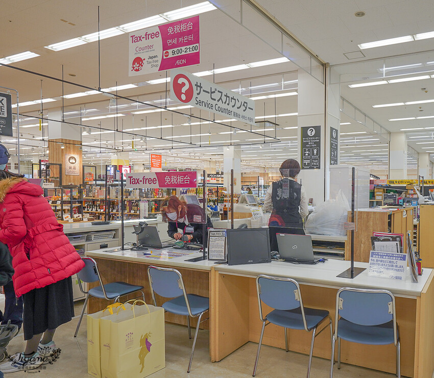 AEON有自己的免稅櫃台,就在1樓超市出來的正中央位置,在各區域結帳出示AEON 95折專用優惠券打折後收據先留著,東西買齊後再一起來免稅櫃台退稅
