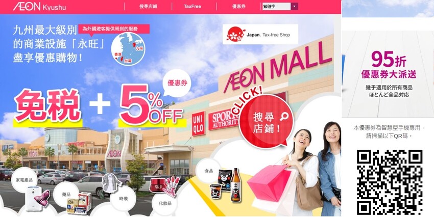 - 九州AEON永旺夢樂城 福岡店|外國遊客限定95折專用優惠券+免稅太超值!!