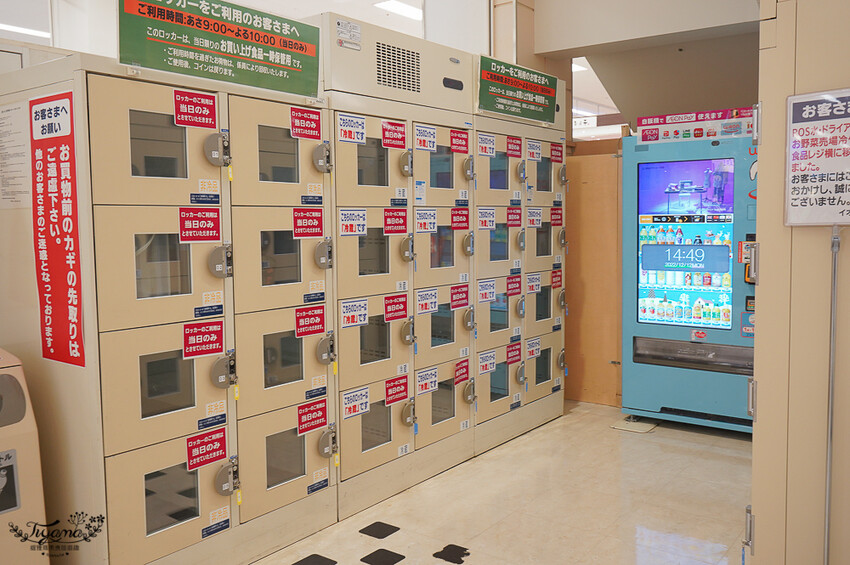 若買了生鮮或太多東西也不用擔心,上2樓手扶梯旁有免費的置物櫃與冷藏置物櫃,先投100日元之後會退還,放置好就能再繼續逛。