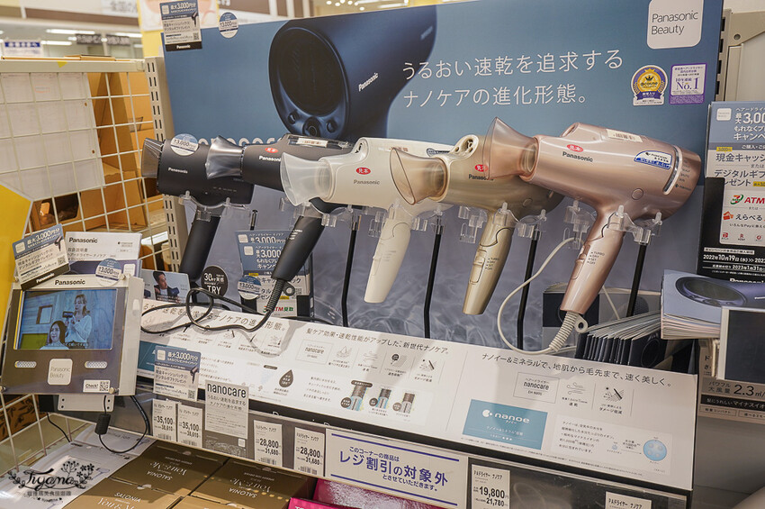 開架式保養彩妝、專櫃彩妝區是女生們必逛的區域,也有最受台灣遊客喜愛的國際牌吹風機,還有捲髮棒、直髮器、電動刮鬍刀…等等。
